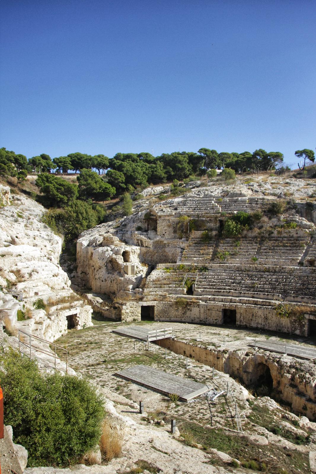 Restauro dell'Anfiteatro Romano, realizzazione di un sistema organico per le visite e la comunicazione dei contenuti, realizzazione di un'area per spettacoli e collegamento all'orto botanico